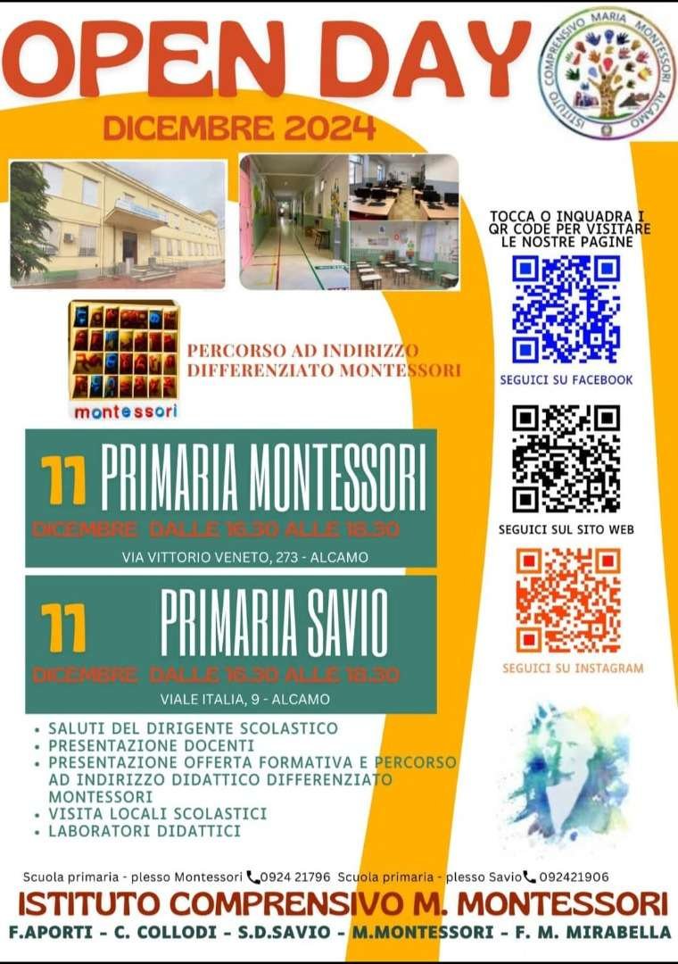L’Istituto Comprensivo Statale “Maria Montessori” di Alcamo (TP) apre le porte per gli open day previsti per mercoledì 11 dicembre 2024 dalle 16,30 alle 18,30 per presentare la proposta Montessori nei due plessi di Scuola Primaria Montessori e Savio: