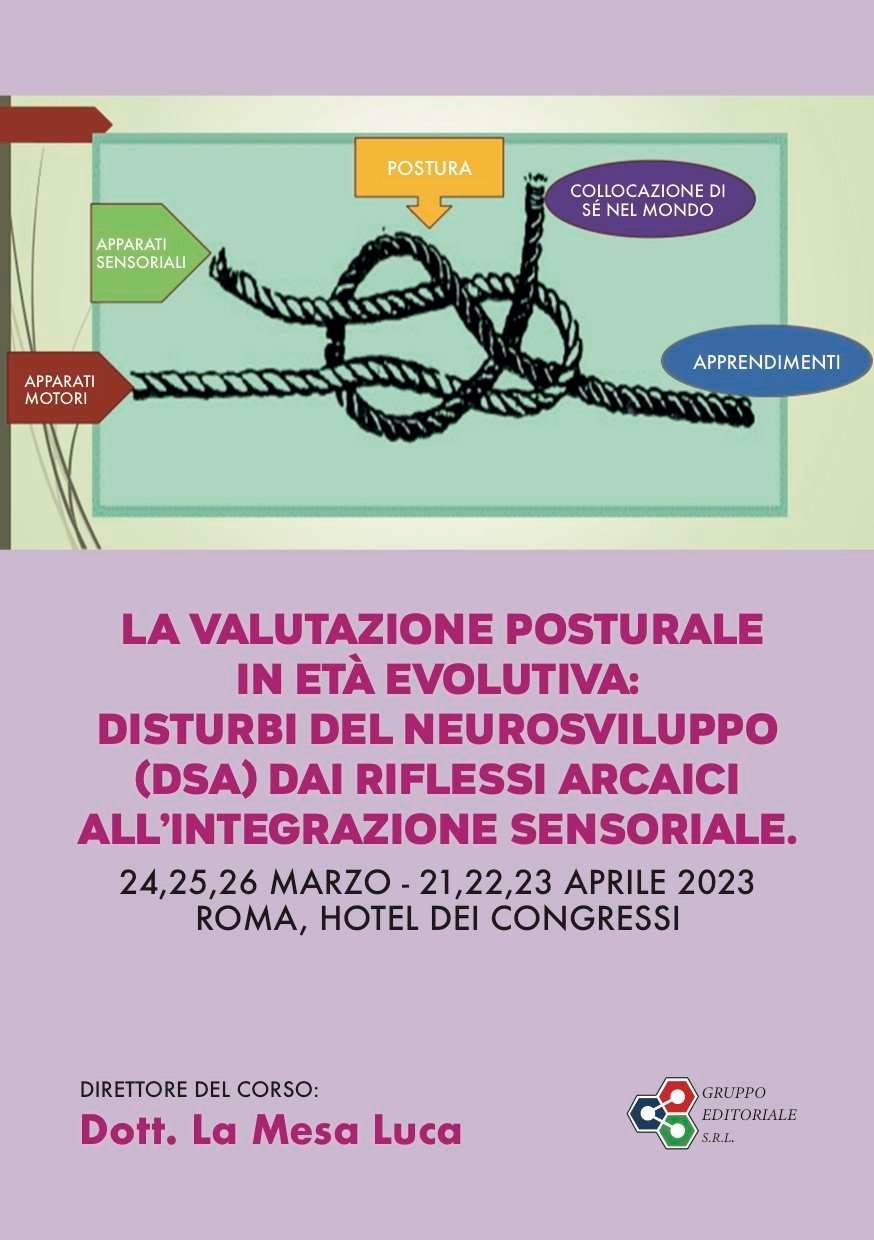 Il Gruppo Editoriale srl organizza un corso su “La valutazione posturale in età evolutiva: disturbi del neurosviluppo (DSA) dai riflessi arcaici all’integrazione sensoriale” previsto per le date del 24, 25 e 26 marzo e 21, 22 e 23 aprile presso l’Hotel dei Congressi di Roma in viale Shakespeare, 29.