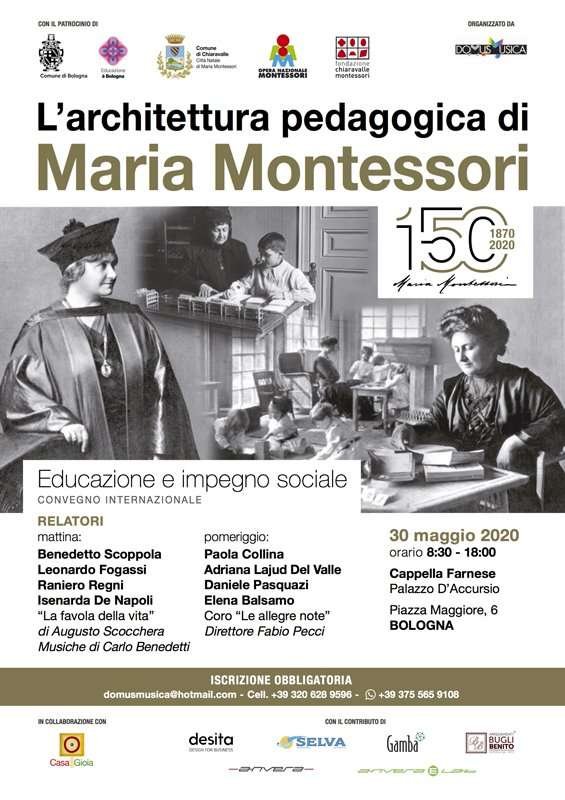 L’Associazione Domusi Musica organizza per sabato 3 ottobre in diretta webinar il Convegno dedicato all’Educazione e all’impegno sociale dal titolo “L’architettura pedagogica di Maria Montessori” dalle ore 15,30 alle ore 18,30.