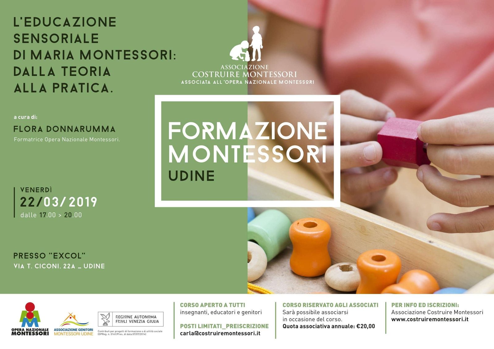 L’educazione sensoriale di Maria Montessori: dalla teoria alla pratica” è il titolo dell’incontro che si terrà venerdì 22 marzo dalle 17,00 alle 20,00 presso “Excol” in via T. Ciconi, 22 A.