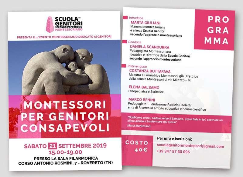 Per informazioni ed iscrizioni: scuolagenitorimontessori@gmail.com – 3475760095