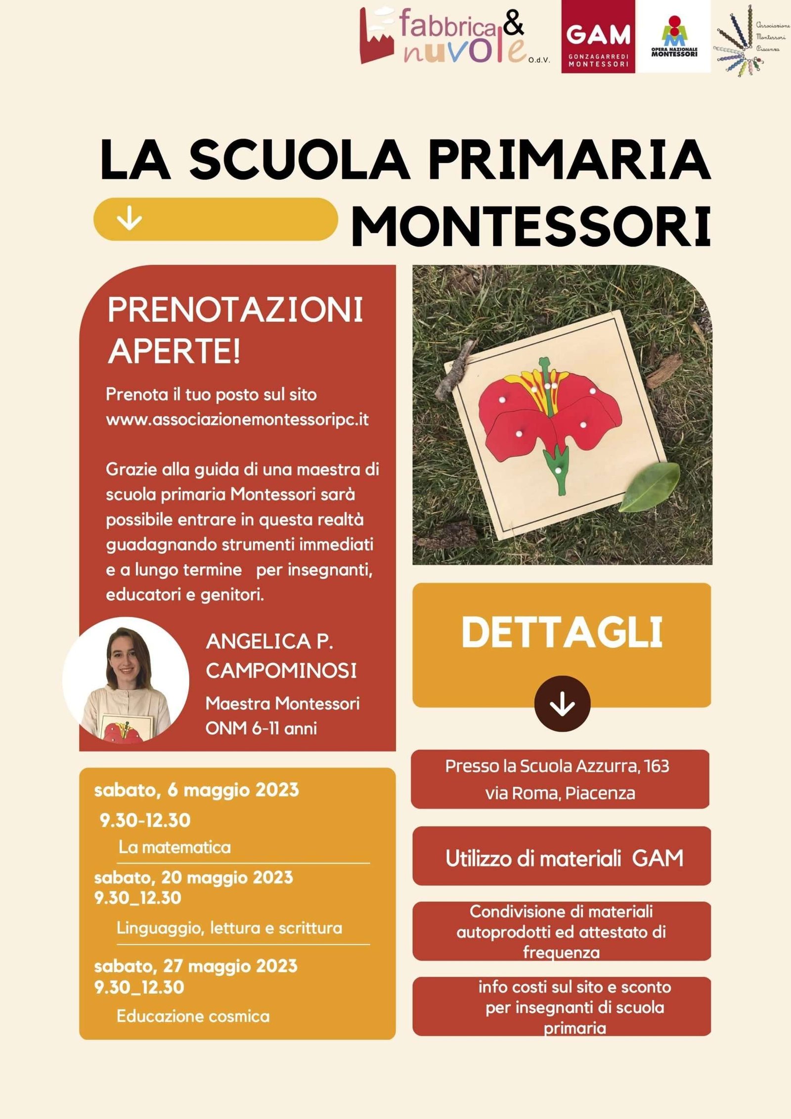 Per informazioni e prenotazioni: www.associazionemontessoripc.it