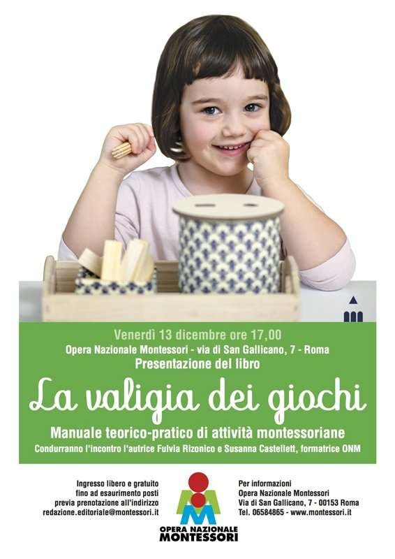 L’Opera Nazionale Montessori in collaborazione con la Lapis Edizioni è lieta di presentare il libro “La valigia dei giochi. Manuale teorico-pratico di attività montessoriane” di Fulvia Rizonico, insegnante e organizzatrice di laboratori montessoriani.
