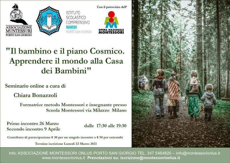 L’Associazione Montessori Porto San Giorgio e l’IC Nardi di Porto San Giorgio presentano i seminari online che si terranno venerdì 26 marzo e venerdì 9 aprile 2021 dalle ore 17,30 alle ore 19,30 a cura dell’insegnare Montessori Chiara Bonazzoli.