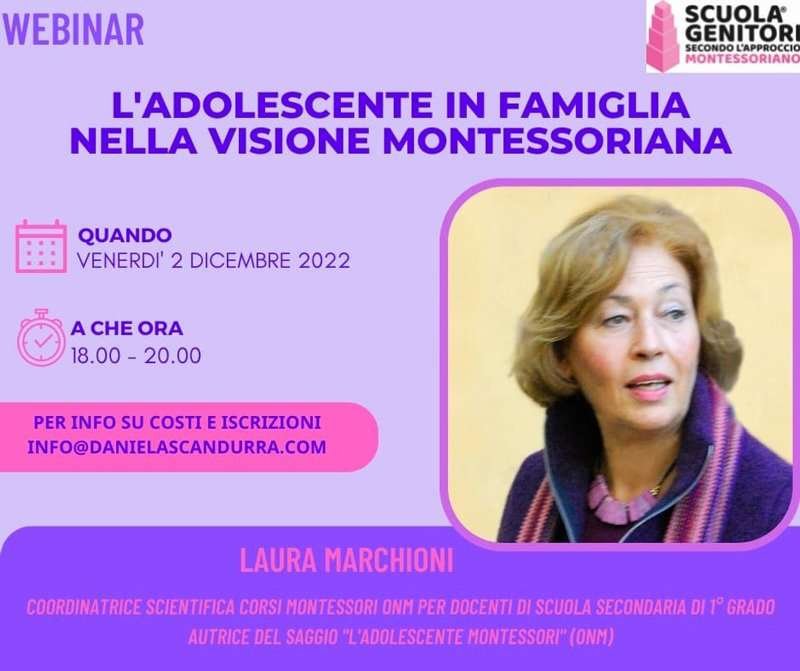 La Scuola genitori secondo l’approccio Montessori presenta il webinar “L’adolescente in famiglia nella visione montessoriana” che si terrà venerdì 2 dicembre dalle 18,00 alle 20,00.