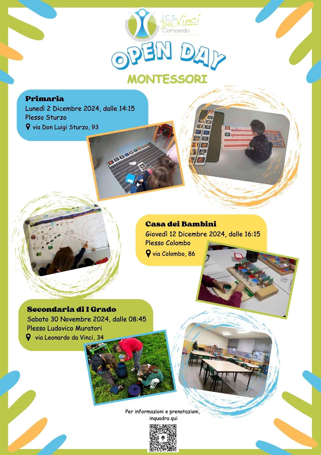 L’Istituto Comprensivo Statale “Da Vinci” di Cornaredo (MI) invita tutti agli open day previsti per novembre e dicembre 2024 per presentare la proposta Montessori:
