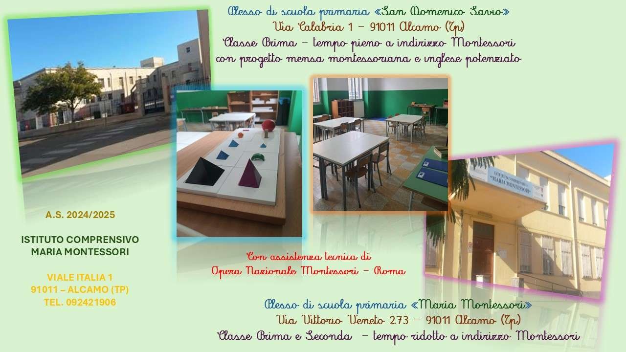 Nei plessi “San Domenico Savio” e “Maria Montessori” dell’Istituto Comprensivo “Maria Montessori” di Alcamo (TP), sono state aperte nuove classi di scuola primaria ad indirizzo Montessori con 52 posti per quest’anno scolastico 2024/2025.