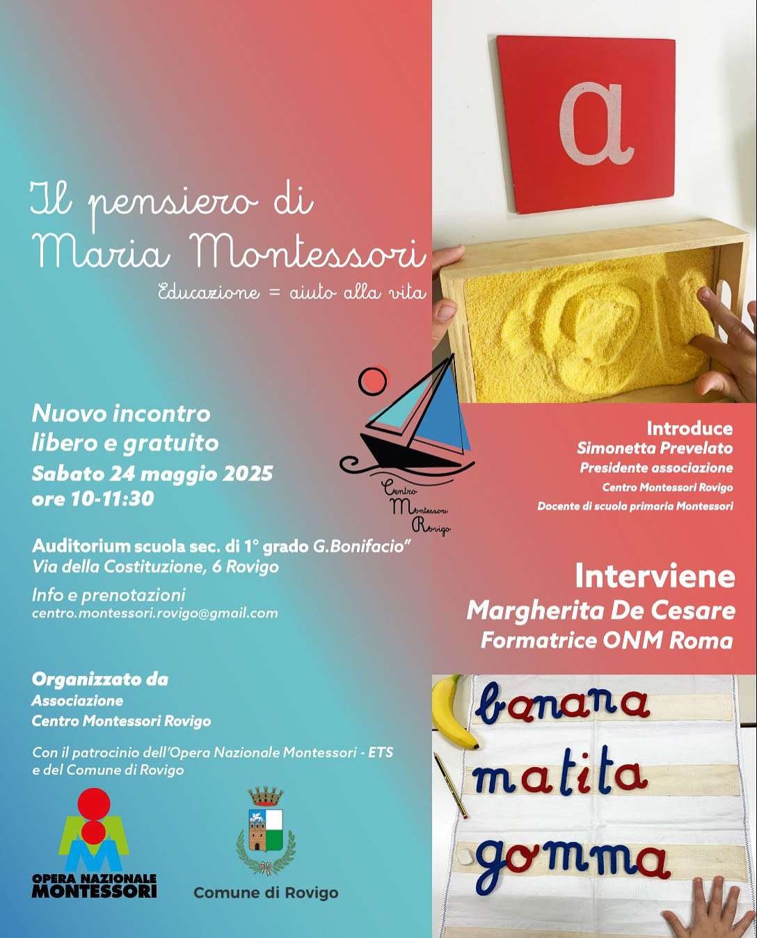 Per informazioni scrivere a: centro.montessori.rovigo@gmail.com
